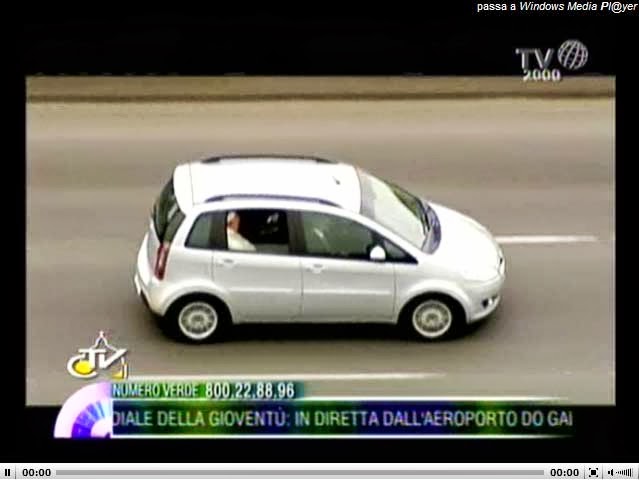 Proprio in questo momento Papa Francesco sta effettuando il trasferimento dall'aeroporto di Rio fino al Palazzo Guanabara su questa piccola auto, una Fiat Idea; continuerà poi su un'auto scoperta.