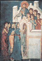 Il Regno dei Cieli è simile a dieci vergini che, prese le loro lampade, uscirono incontro allo sposo. Cinque di esse erano stolte e cinque sagge; le stolte presero le lampade, ma non presero con sé olio; le sagge invece, insieme alle lampade, presero anche dell'olio in piccoli vasi.